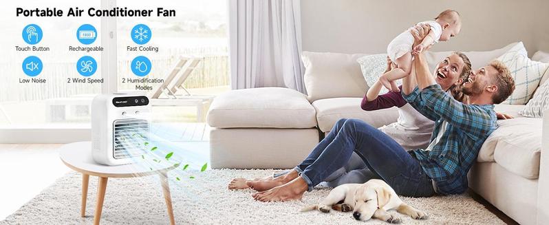 - 【Space-Saving Mini AC for Any Corner】The portable air conditioner is not limited by power cords and outlets, easy to carry and use anywhere! The evaporative air cooler is perfect for home (kitchen, bedroom, living room), office and outdoor activities such as camping. Type-c port fast charging, can be charged and used as well as plugged in to meet your different needs.